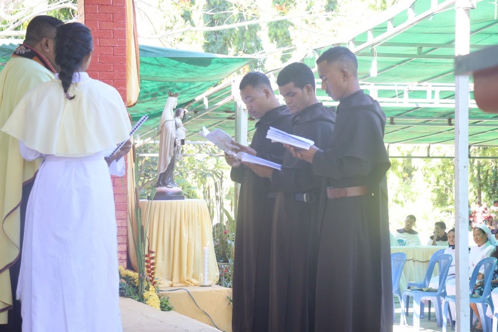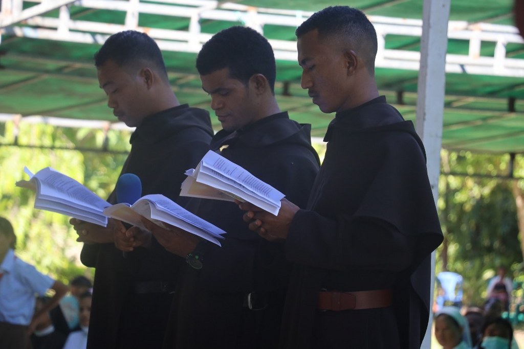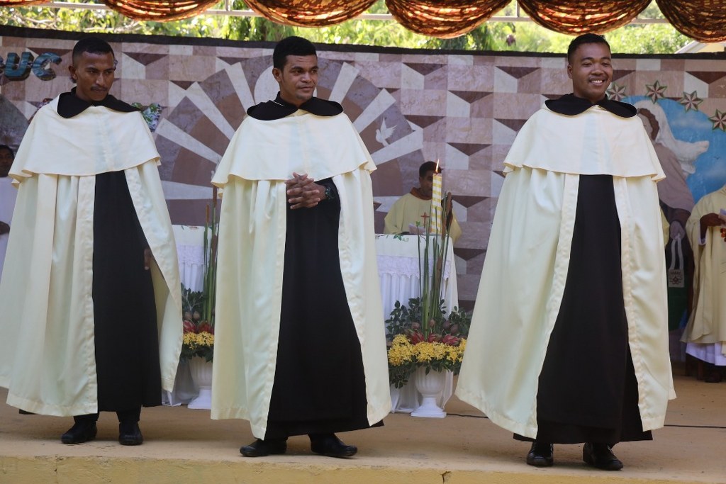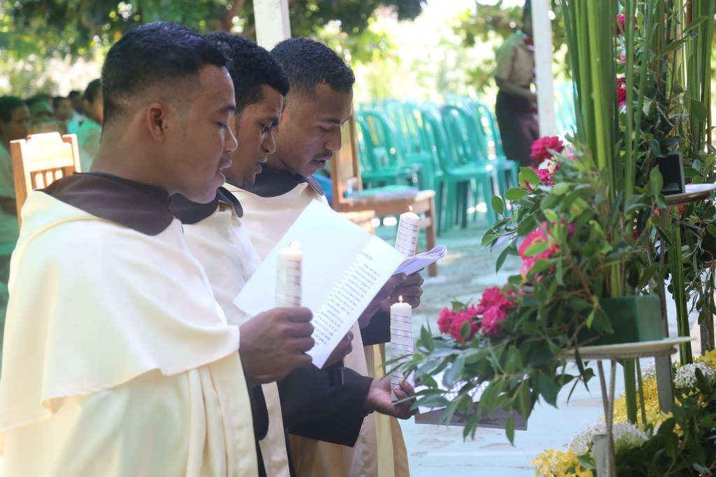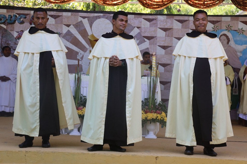 Our 3 novices, Brs Constantino Barreto Amaral, Moises Soares and Manuel Xavier Gonzaga, made their first profession of vows as Carmelites on 14 December. They made their vows at Mass in Hera, Timor-Leste at the end of their Novitiate year. Fr Carlito da Costa Araújo, Provincial Delegate for Timor-Leste, received their vows in place of Fr Paul Cahill (Prior Provincial) who was unable to travel to Timor due to COVID restrictions. Constantino, Moises and Manuel join our 29 other brothers in first vows. The total number of those in formation is now 37. Congratulations, Brothers!