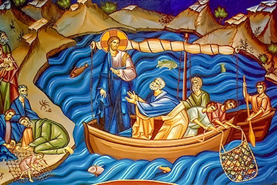 When Simon Peter saw this he fell at the knees of Jesus saying, ‘Leave me, Lord; I am a sinful man.’ For he and all his companions were completely overcome by the catch they had made; so also were James and John, sons of Zebedee, who were Simon’s partners. But Jesus said to Simon, ‘Do not be afraid; from now on it is people alive you will catch.’ Then, bringing their boats back to land, they left everything and followed him. [Luke 5:1-11]