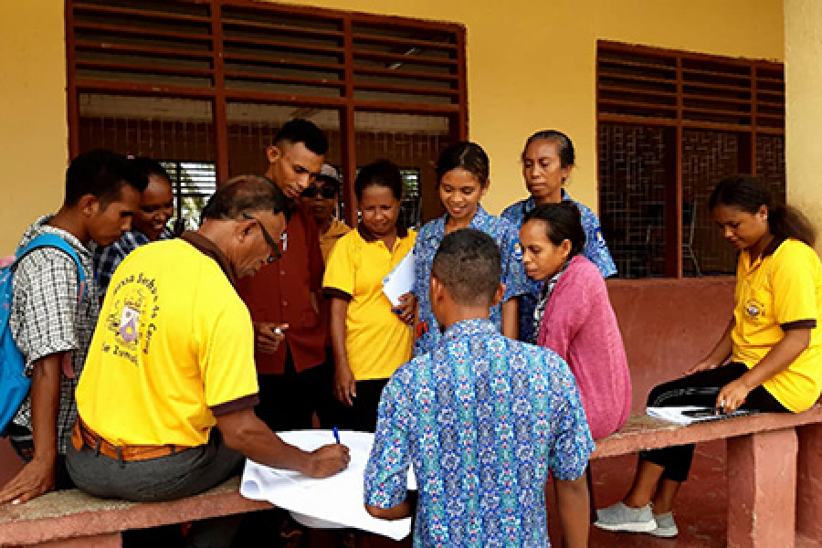 School and parish came together in Zumalai recently for 2 days of Safeguarding Training. Teachers and volunteers from the primary school joined with parish staff, catechists and council members. In all, more than 50 people took part in the sessions run by one of our Safeguarding consultants. At the end of the weekend all who had completed the training sessions signed the Carmelites’ Safeguarding Code of Conduct.