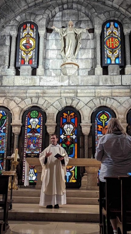 The group stopped in Paris to visit sites associated with St Vincent. At Sacre Cuore, Montmartre, Matthew celebrated Mass for the group in the crypt on the memorial of St Titus Brandsma, 27 July. It was here that another Carmelite, St Thérèse of Lisieux, visited on her journey to Rome to ask the Pope’s permission to join the Carmelites because of her age.