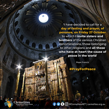 With this in mind, I have decided to call for a day of fasting and prayer, of penance, on Friday 27 October, to which I invite sisters and brothers of the various Christian denominations, those belonging to other religions and all those who have at heart the cause of peace in the world, to join in as they see fit. That evening, at 6pm, at Saint Peter’s, we will spend an hour of prayer, in a spirit of penance, to implore peace in our time, peace in this world. I ask all the particular Churches to participate by arranging similar activities involving the People of God."