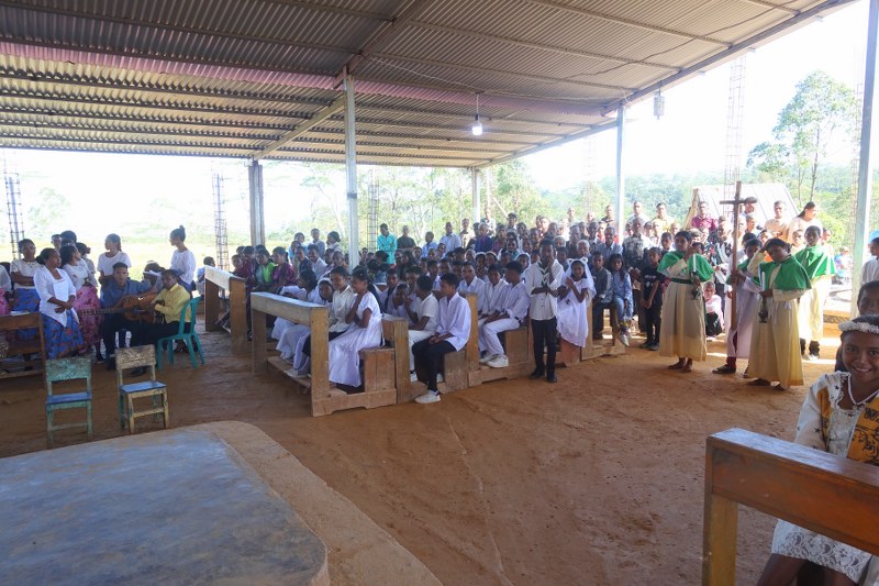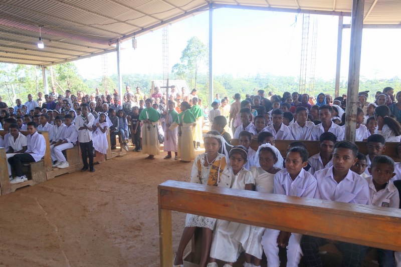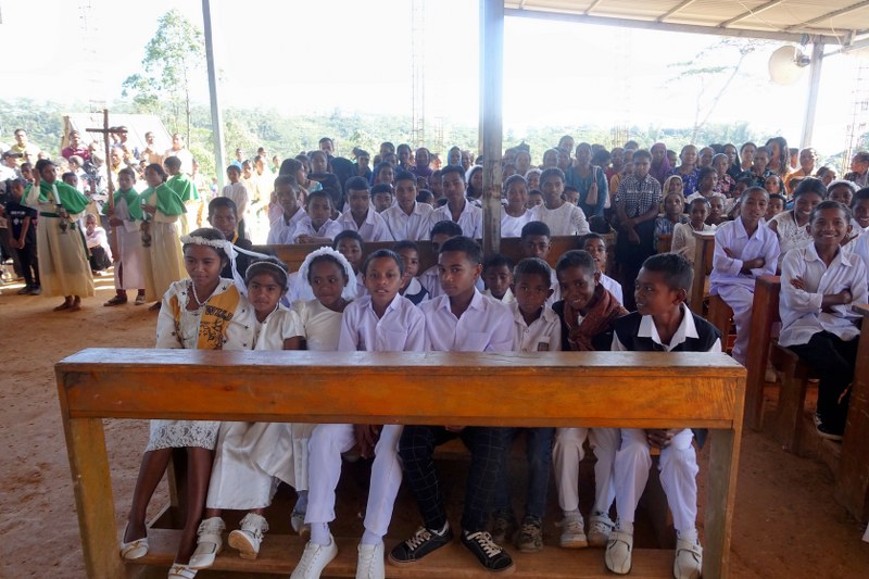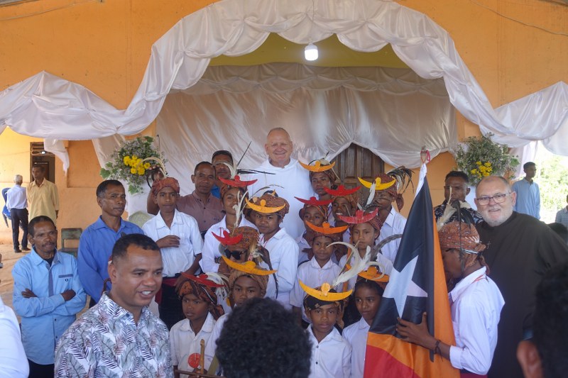The local Timorese new service, RTTL (Rádio e Televisão de Timor-Leste), was on hand to record the welcome and the mass at Guisarudo.
