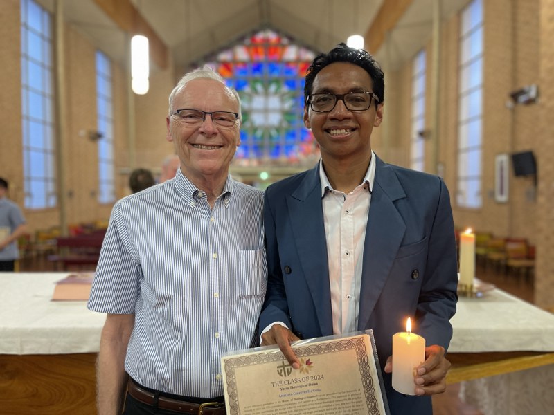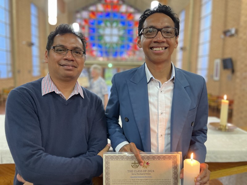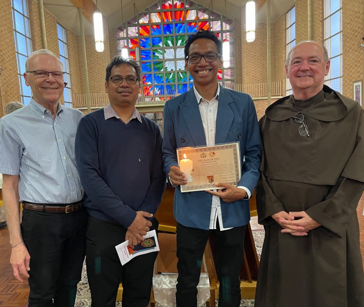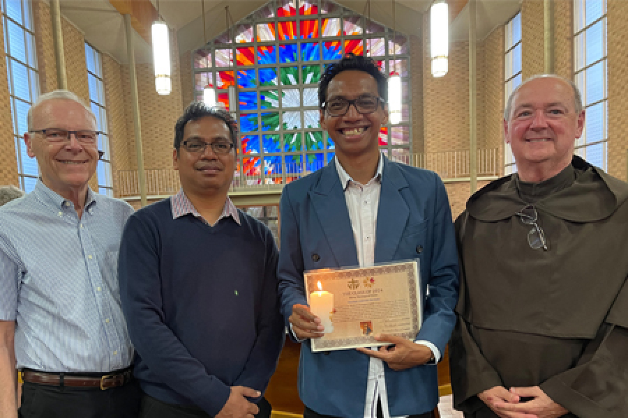 Br Anacleto Guterres Da Costa has been approved to graduate as a Master of Theological Studies by the University of Divinity. The approval came during the end-of-year Eucharist at Yarra Theological Union, one of the member colleges of the University, on 22 November. Along with other graduands, Anacleto received a certificate and a candle acknowledging their achievement. Also present at the Mass were Anacleto’s brother, Fr Narcizio Da Costa Villanova, Br Daryl Moresco and Fr David Hofman.