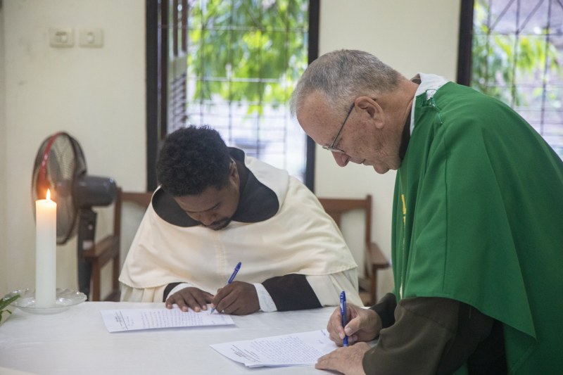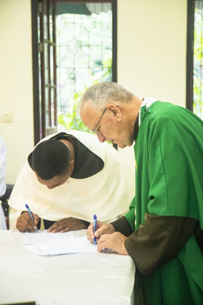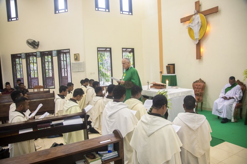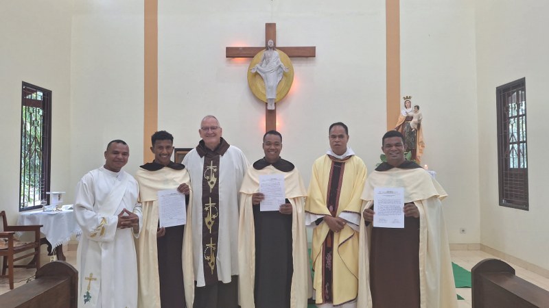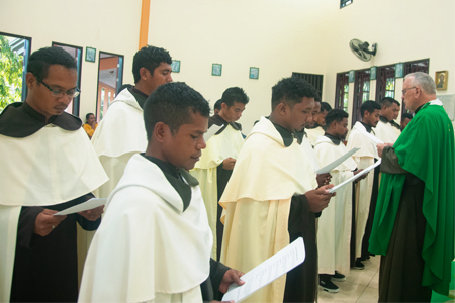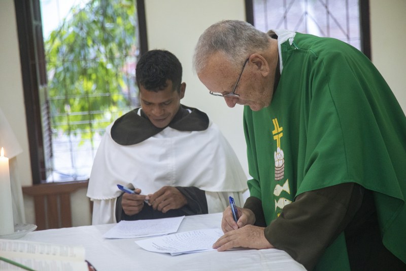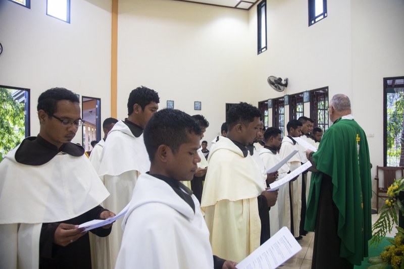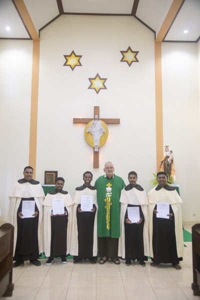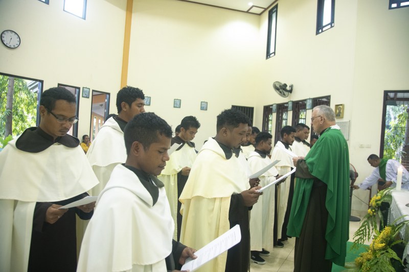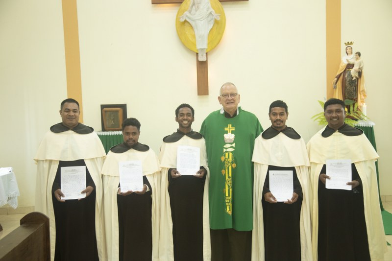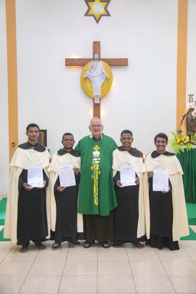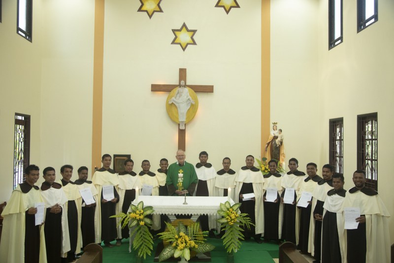 Recently, at the Community of Sao Elias, 20 young Carmelites renewed their vows to live Carmelite life for another year. Across 2 occasions Fr Bruce Clark (Prior Provincial) celebrated the Eucharist and received the vows of the brothers. The brothers were: Celestino Soares, Elias Soares Sin, João Fernando Cabal, Paul Martins de Araújo, Bonifacio Bragança Lopes, Fernando Gusmão, Elias Soares Sin, Samuel Lopes, Antonio Jonias da Gloria, Calisto Pereirra Rodriguês, Pedro Ximenes Rodriguês, Zebedeu de Jesus Vidigal, Aleixo Coli de Deus, Gaudencio do Rosario, Virgilio de Jesus Brites, Honorio Pereira Bobo Lobato, Ponciano Norberto de Deus, Constantino Barreto Amaral, Moises Soares and Nataçio de Jesus Maia.