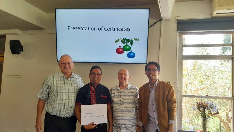 Fr Narcizio Da Costa Vilanova graduated from his English Language Course at the English Language School for Pastoral Ministry on Friday 13 December. Fr Narcizio was the main speaker at the Graduation Ceremony held at the Passionist Monastery, Templestowe (Vic). During his talk, Narcizio shared his experience of studying English as well as the gratitude of all students for the help and support of the staff of ELSPM. During the ceremony those graduating were presented with a lighted candle and a certificate acknowledging their achievement. Also present at the ceremony were Fr Bruce Clark (Prior Provincial), Br Daryl Moresco and Narcizio's brother, Br Anacleto Guterres Da Costa.