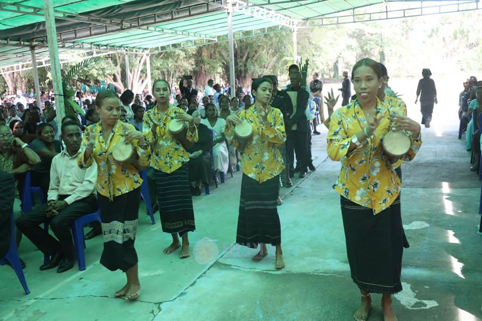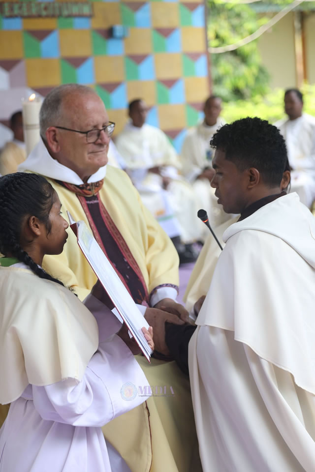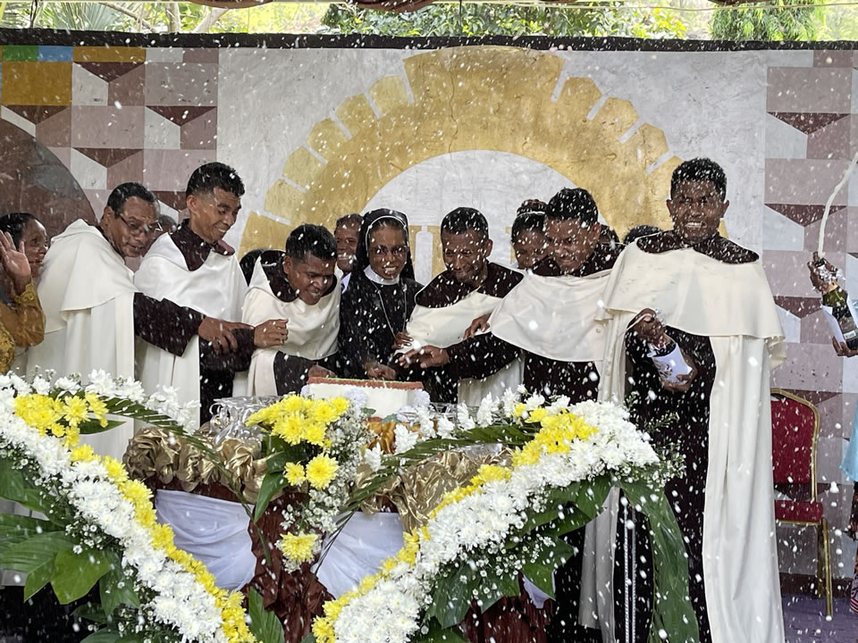 After Mass, the traditional ‘champaign and cutting of the cake’ ceremony took place toasting the Brother’s commitments. While the food was being distributed there were speeches, songs and cultural dances.