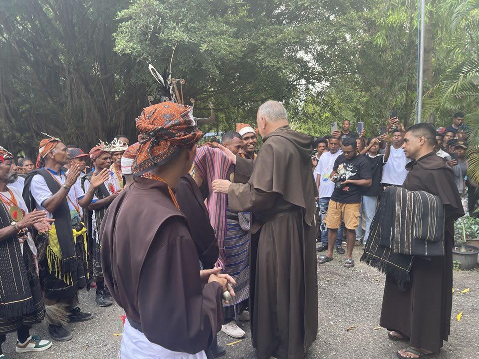 In a ceremony the evening before the Professions, their families brought the brothers, in traditional dress, to the front door of the community and formally entrusted them to the Carmelites for the rest of their lives. The brothers were welcomed and received by Fr Bruce Clark (Prior Provincial) and other members of the community at Hera.