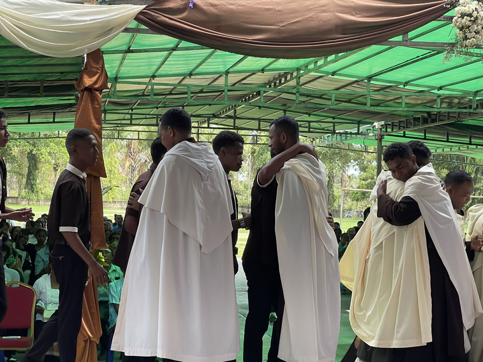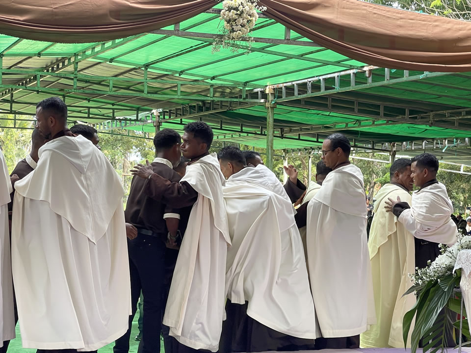 Relative, friends and members of the Carmelite Family gathered at Hera, Timor-Leste, to celebrate the Solemn Vows (life-long commitment) of Brothers Paulo Martins De Araújo, Celestino Soares, Elias Soares Sin, João Fernando Cabal, Fernando Gusmão and Samuel Lopes on 20 November.