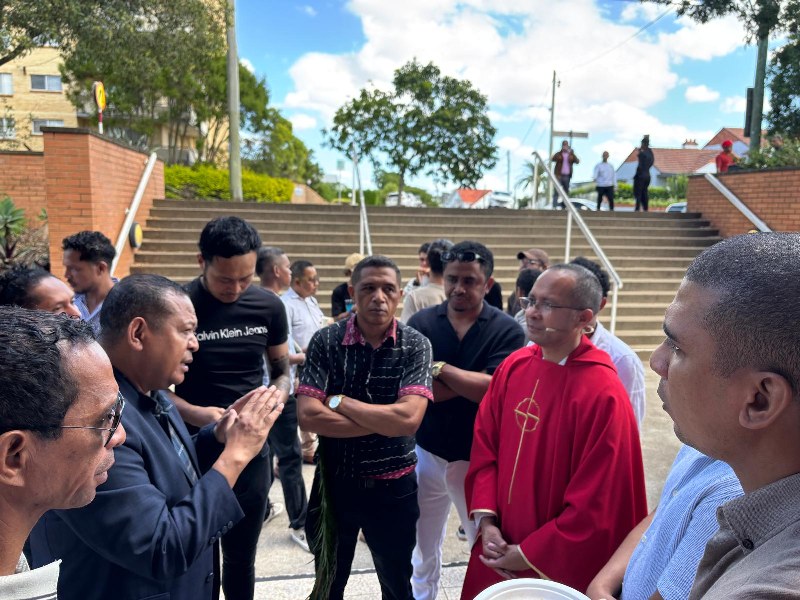 With open arms and hearts, they welcomed Rogerio Araujo Mendonca, Timorese Secretary of State for Vocational Training and Employment, and a delegation of officials from the Timorese government and the Australian Embassy in Dili, to the celebration of Mass. In Australia to collaborate for continued improvement of the Pacific Australia Labour Mobility (PALM) scheme, the group came to Mt Carmel along with many Timorese from around South Eeast Queensland.