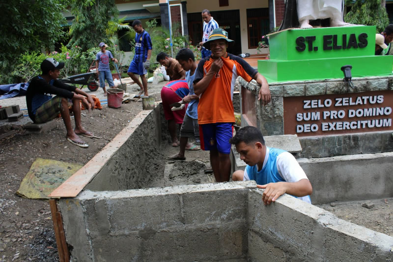 The project was the brainchild of Fr Carlito Da Costa Araujo and Br Frangelino Ximenes, who also supervised the work. Fish have since been added to the water feature.