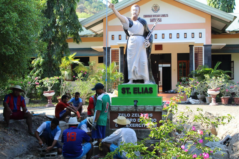 The statue of the Prophet Elijah in front of our house in Hera, Timor-Leste, was given a makeover by our Carmelite students during the summer holidays. Fresh coats of paint and a water feature surrounding the statue were added with stunning effect.