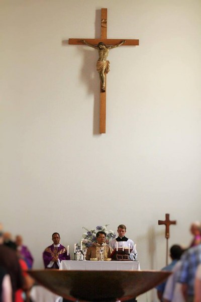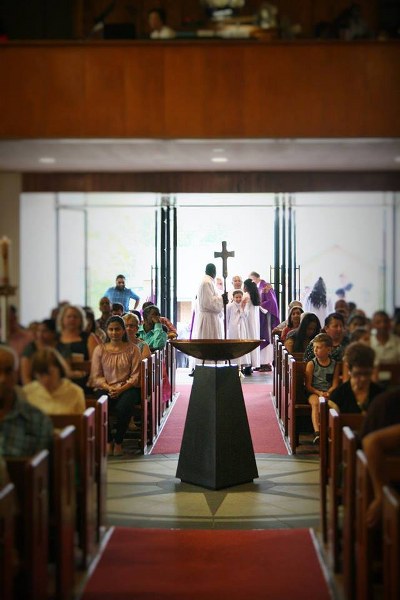 The long-awaited renovations to our Church at Wentworthville (NSW) are now complete. Last Sunday Bishop Long (Bishop of Parramatta) consecrated the new altar and blessed the new ambo, baptismal font and renovated tabernacle.