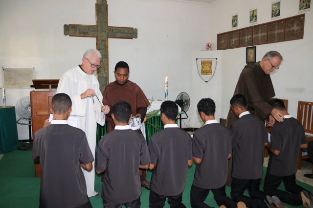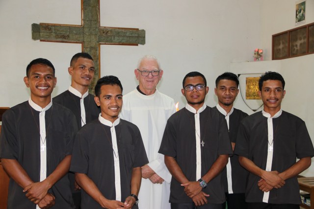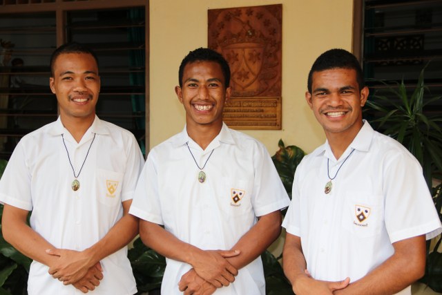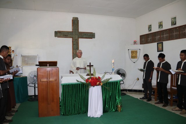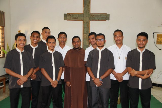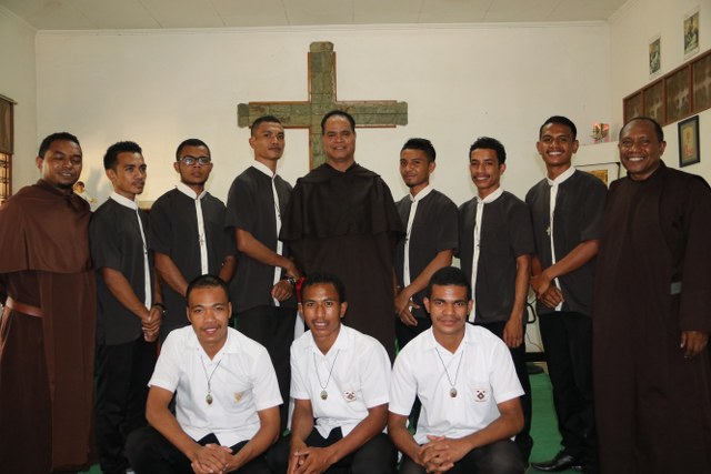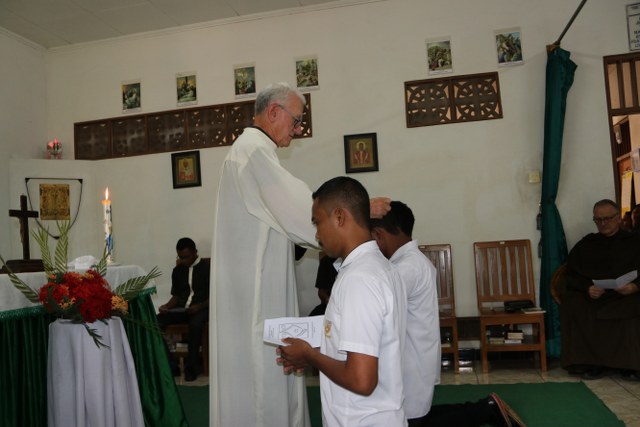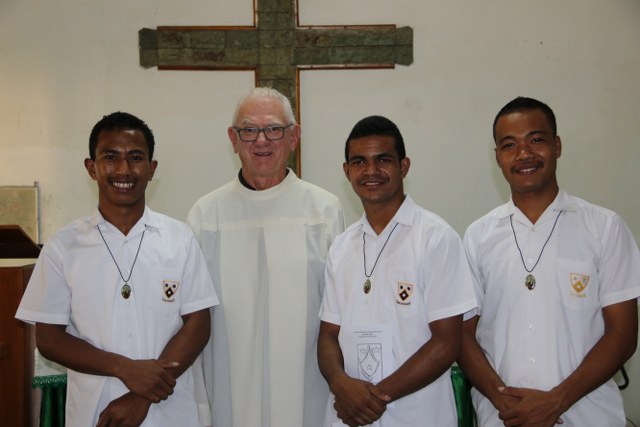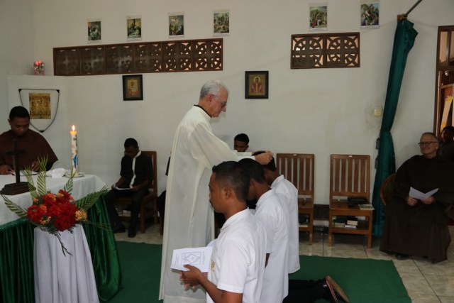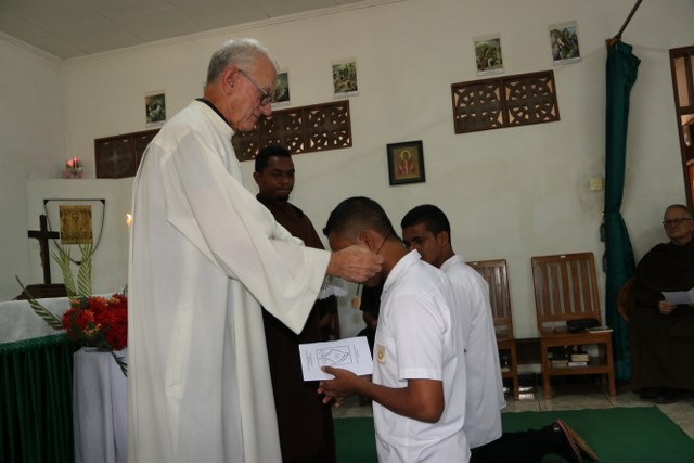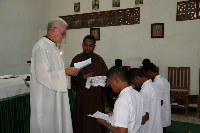 More than 40 Carmelites gathered at Blessed Titus Brandsma community in Fatuhada in Dili to welcome 3 new candidates into the Pre-Novitiate program. They are Manuel Xavier Gonzaga, Moises Soares, and Constantino Barreto Amaral. During the same celebration of Evening Prayer our 6 first year pre-novices were also admitted to the second year of the pre-novitiate program. Fr Paul Cahill (Prior Provincial) presided at the celebration and presented a small cross and medal to the pre-novices as a sign of their participation in the program.