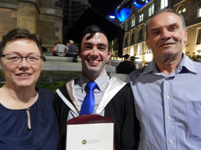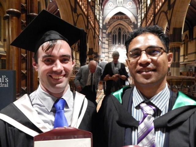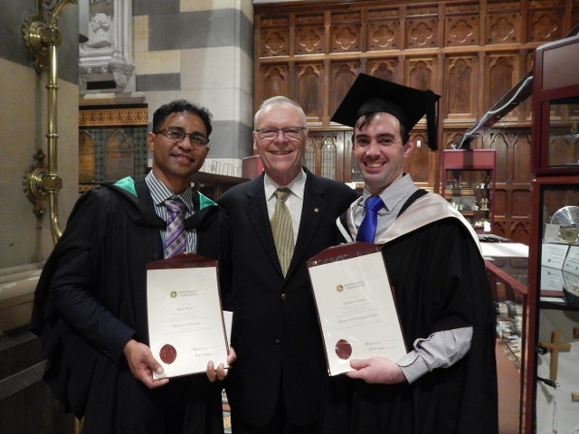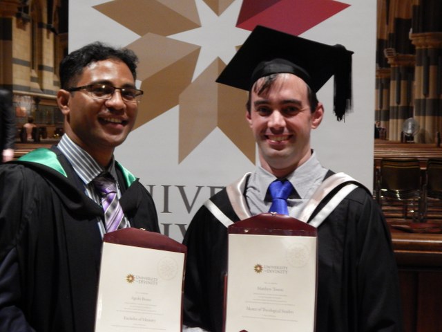 During the 2019 University of Divinity Graduation Ceremony last Friday evening Br Agedo Bento graduated with a Bachelor of Ministry degree and Br Matthew Tonini graduated with a Masters in Theological Studies. St Paul’s Anglican Cathedral, Melbourne, was packed with faculty, students, staff, family and friends for the 2 hour ceremony. Congratulations Agedo and Matthew!