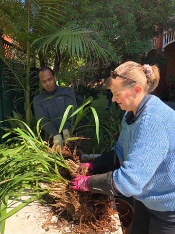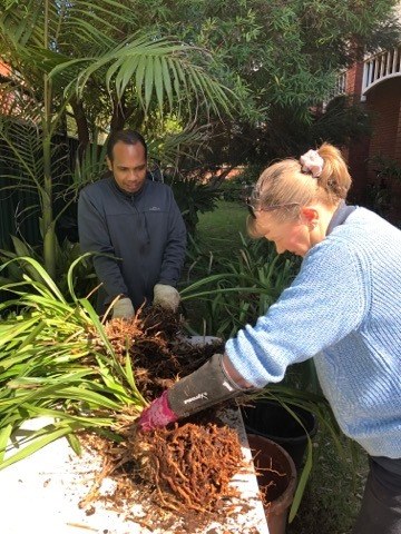 It wasn’t quite Gardening Australia, but on Saturday morning the Middle Park (VIC) Carmelites gathered to re-pot our orchids which had become very overgrown. Under the direction of Belinda Ahearn, our Province Executive Assistant, we separated the orchids into ‘families’ of four and re-planted them in about 30 smaller pots with fresh soil. We hope when they flower next year we will be able to sell some to help the Carmelites in Timor-Leste.