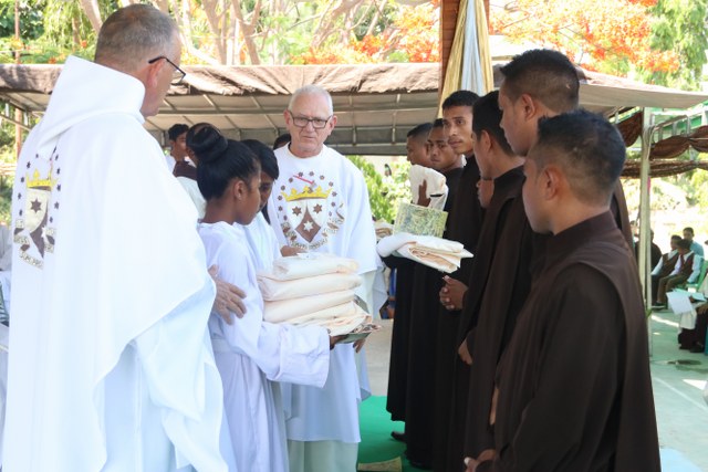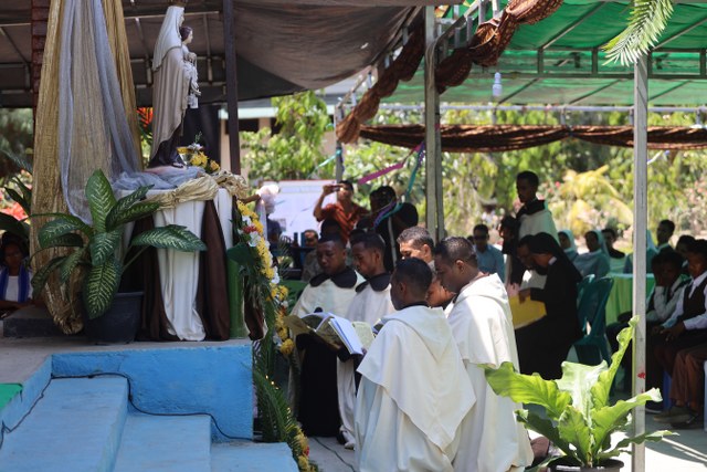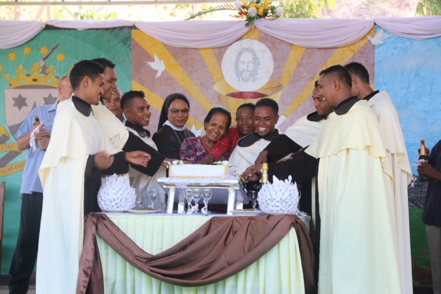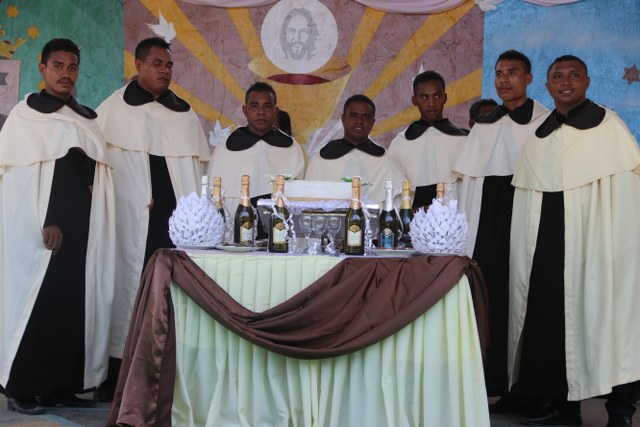 On Friday 6 December, Januario Maria Soares, Calisto Pereira Rodriguês, Pedro Rodriguês Ximenes, Zebedeu de Jesus Vidigal, Donanciano Batistuta da Costa Alin, Aleixo Cole de Deus and Gaudênçio do Rosario made their First Vows as Carmelites. A large gathering of Carmelite religious (male and female) and laity, along with other priests and religious, family and friends were present for the morning Mass and Profession ceremony and afterwards enjoyed lunch, music, dancing and other entertainment until late into the afternoon. Many thanks to all who worked extraordinarily hard to ensure the success of the celebrations. Congratulations to Januario, Calisto, Pedro, Zebeseu, Donanciano, Aleixo and Gaudênçio!