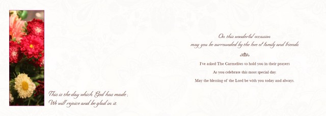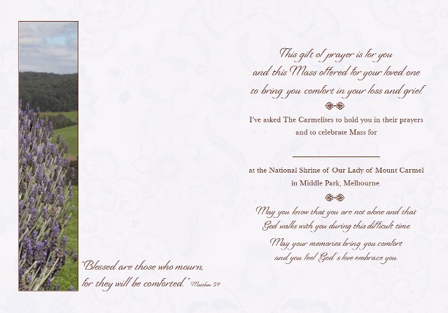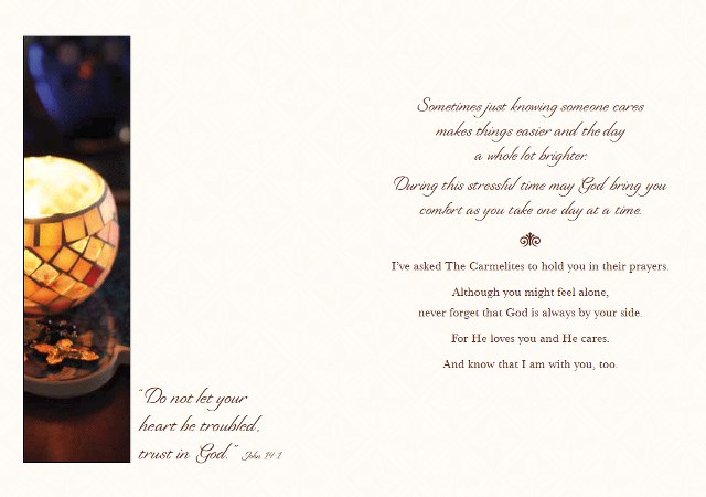 These cards not only convery your care and concern for those in need. They also let you include those you love in the masses and prayers of the Carmelites.