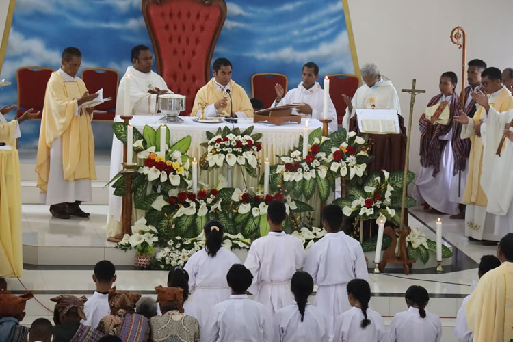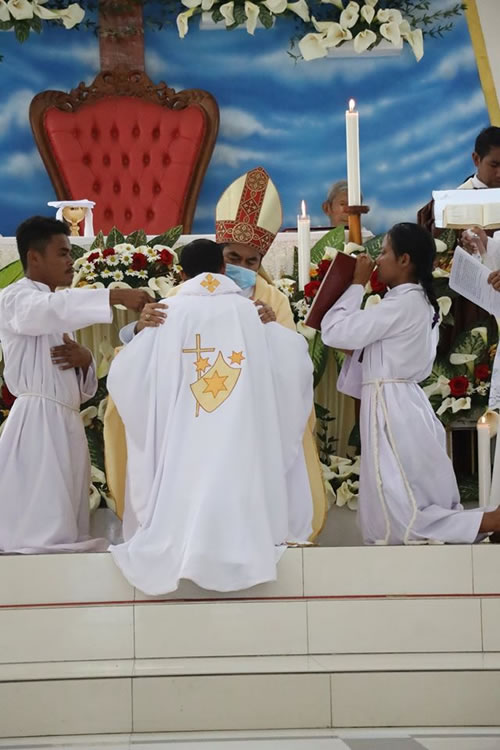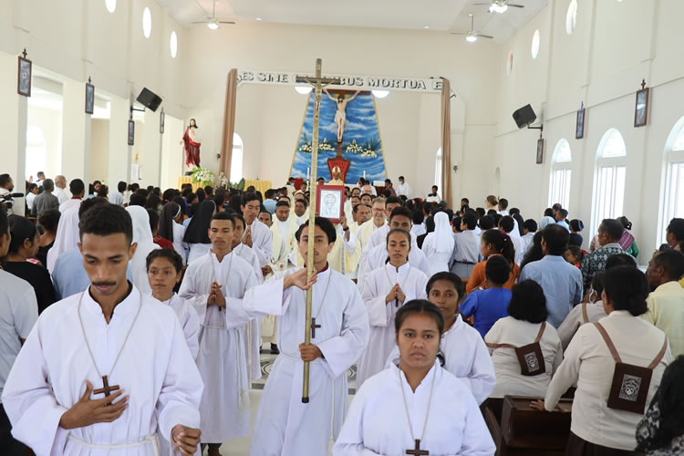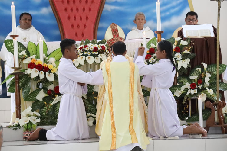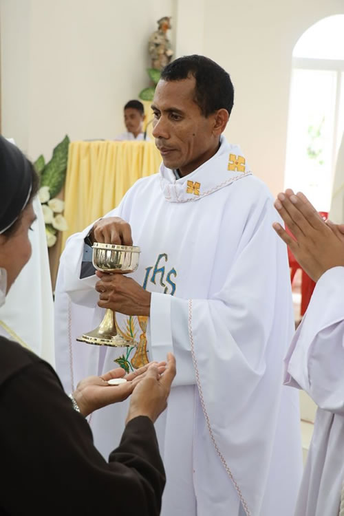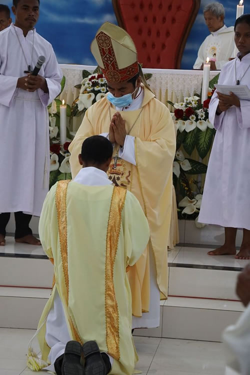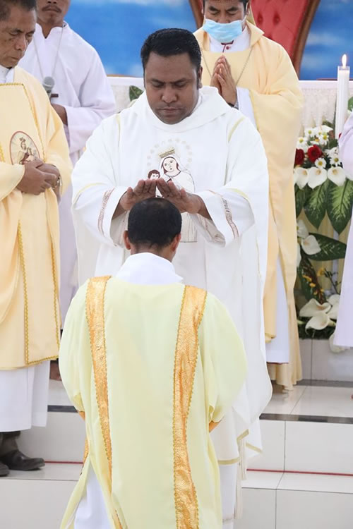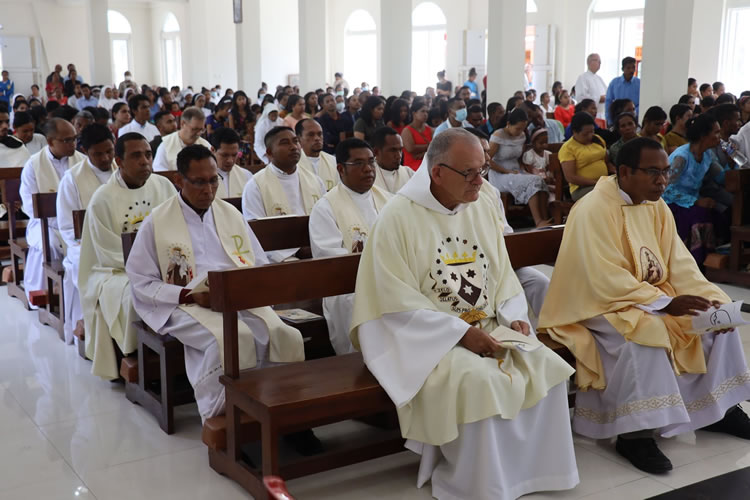 On Saturday 8 August Fr Donato De Jesus Marçal was ordained a priest at St James Church, Hera, Timor-Leste. The ceremony and feast afterwards were attended by over 1,000 people. Archbishop Virgilio do Carmo da Silva, SDB was the celebrant. Fr Carlito Da Costa Araújo (Provincial Delegate for Timor-Leste) represented Fr Paul Cahill (Prior Provincial) who was unable to attend due to COVID-19 restrictions. For the past year Donato has been a member of our community at Coorparoo (QLD), studying English and exercising his ministry as a deacon before returning to Timor-Leste in July. Congratulations, Donato!