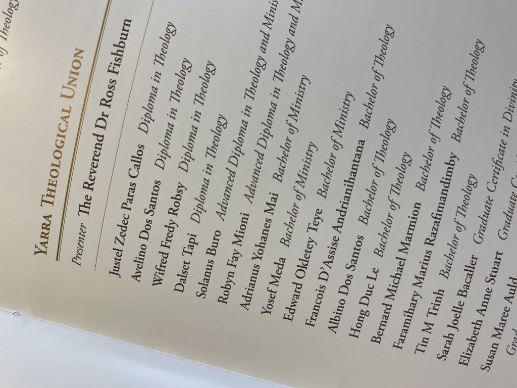 Last Friday evening (19 March) Br Albino Dos Santos joined 400 other students of the University of Divinity, Melbourne, for the Graduation Ceremony during which he received the degree of Bachelor of Theology. Having studied Philosophy for 3 years in Timor, Albino came to Australia in 2016. Completing his English studies in 2017 he began the Bachelor of Theology Degree which he completed at the end of 2020. Albino is now studying for the Master of Theological Studies degree. Congratulations, Albino!