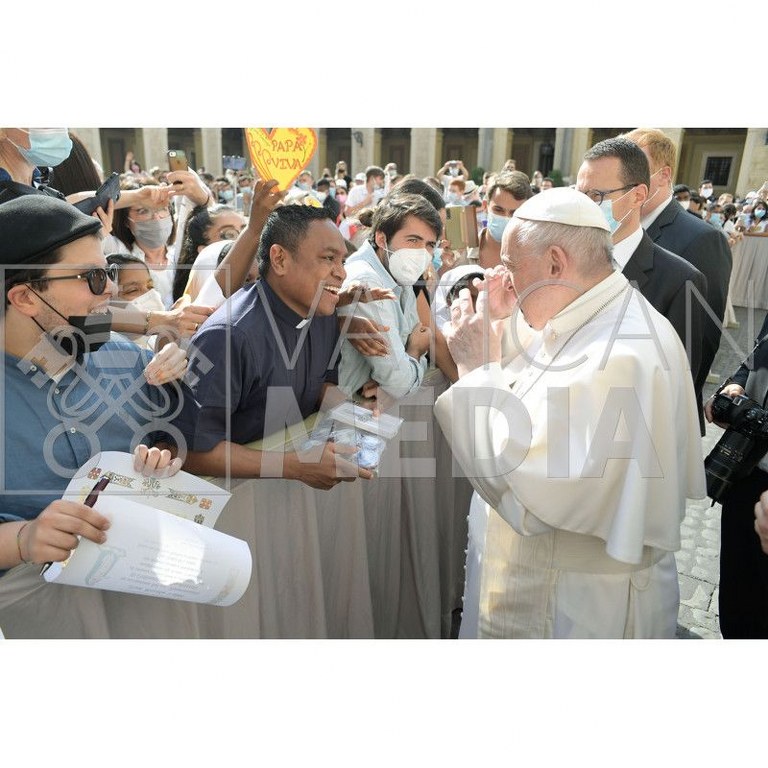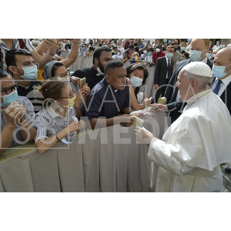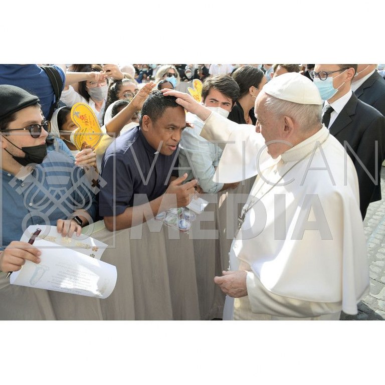 Last Wednesday, Fr Carlito, a Carmelite from Timor-Leste, went to the audience with the Holy Father and had the opportunity to meet the Pope. “When the Holy Father went by I asked him to bless and pray for me, my family and God’s people in my country. The Holy Father asked me, ‘Where are you from?’ I replied that I am from Timor Leste and the Holy Father said to me, ‘Keep your faith, you are still young, pray diligently and do the best in your study.’” Then the Holy Father put his hands on my head and blessed me,” Fr Carlito said.