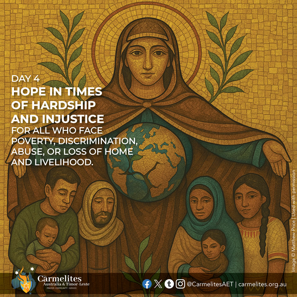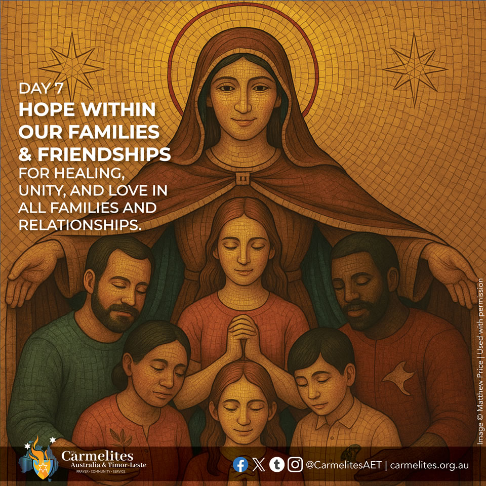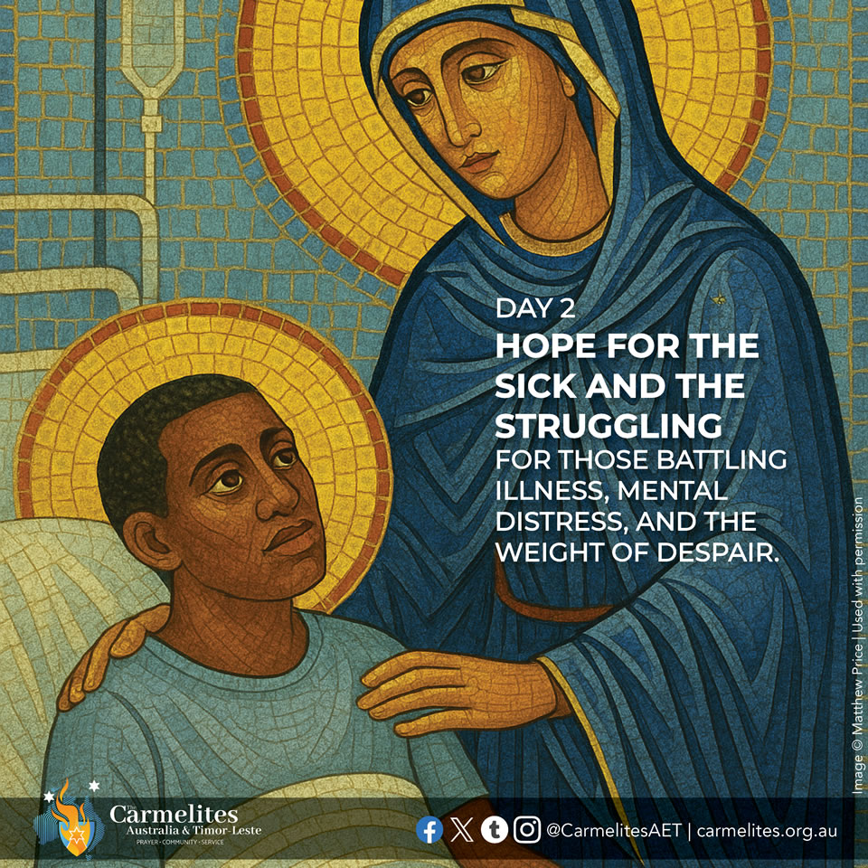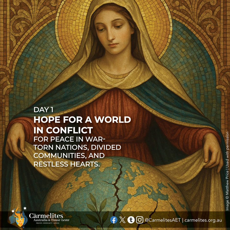 On the 9 days before the Feast of Our Lady of Mount Carmel (16 July), we pray for the following intentions for all those in need throughout the world. The novena can be prayed at any time of the year for these intentions or for your own asking Our Lady of Mount Carmel to intercede and pray with us. You are invited to light a candle each day, reflect with the intention and prayer, and spend a few moments in silence with Our Lady.