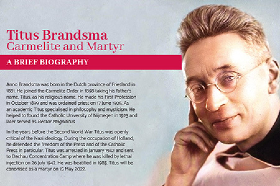 Anno Brandsma was born in the Dutch province of Friesland in 1881. He joined the Carmelite Order in 1898 taking his father’s name, Titus, as his religious name. He made his First Profession in October 1899 and was ordained priest on 17 June 1905. As an academic Titus specialised in philosophy and mysticism. He helped to found the Catholic University of Nijmegen in 1923 and later served as Rector Magnificus. You can read and download the story of Titus Brandsma below.